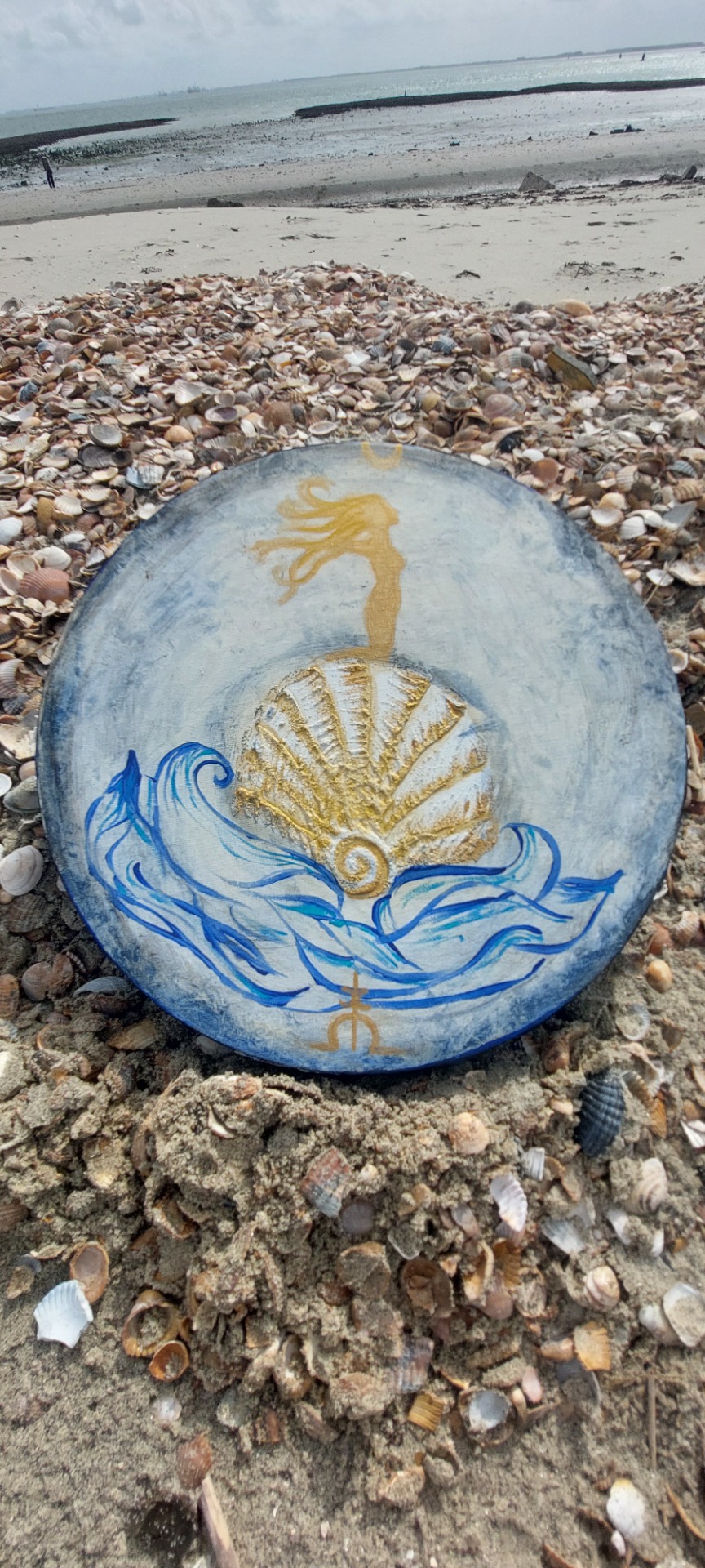 Gezegend met heilig zand en zegelmagie is deze oceandrum ingewijd om het ritme van de getijden en de adem van de oceaan op te roepen.